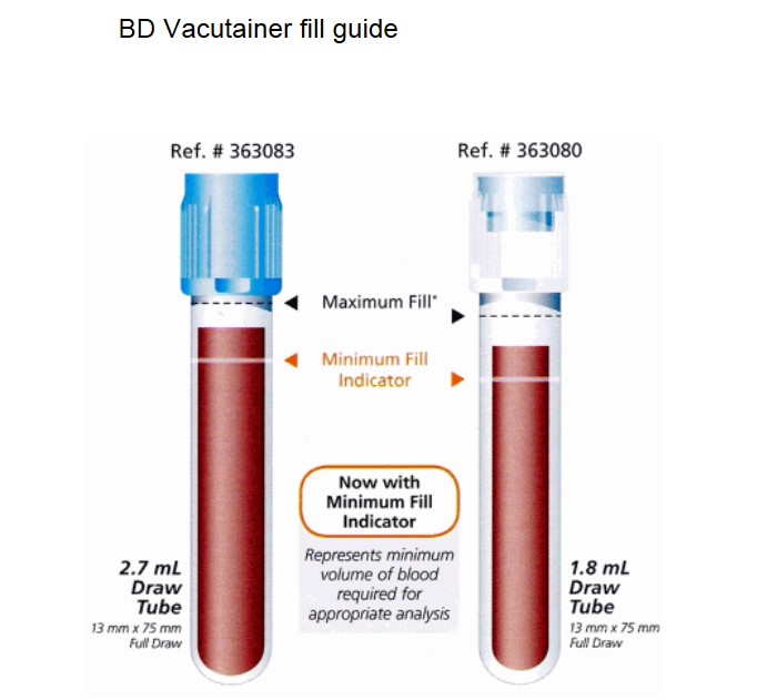 | Blue Top Tube | Whole Blood | Ambient | 3.5 mL To fill line | 3.5 mL | 3.5 mL | 2 hours |